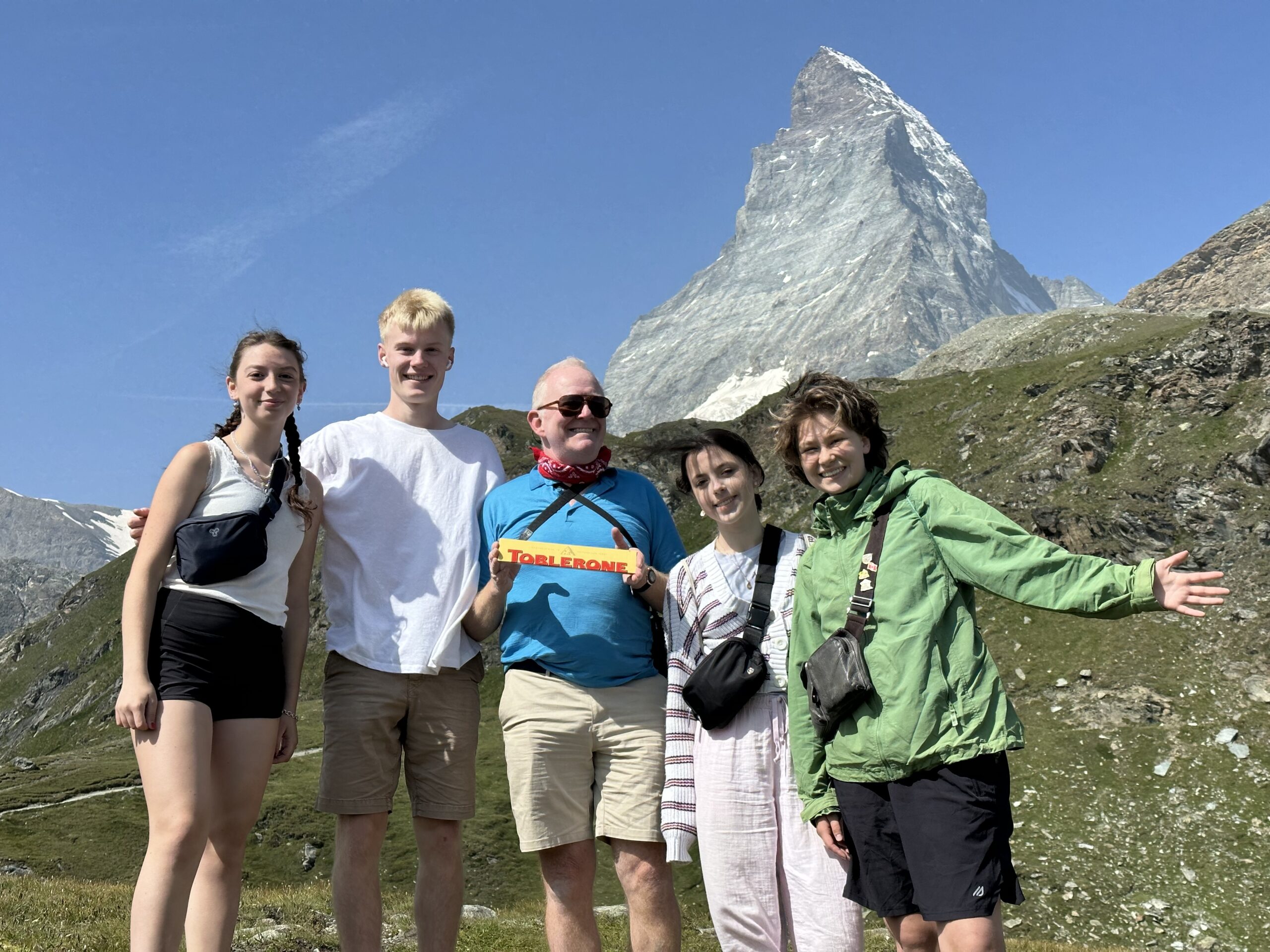 Finally in the evening we arrived at Zermatt to get a tasty delivered pizza in our new Hotel home for a few days! The break from the heat of Spain, France, and Germany was welcomed by all. We had some class time & free time on day one, a great hike to a beautiful lake via gondola lift and many steps for a few photo opportunities, and then more time to study, hang out, and certainly continue bonding with friends over cards before bed!