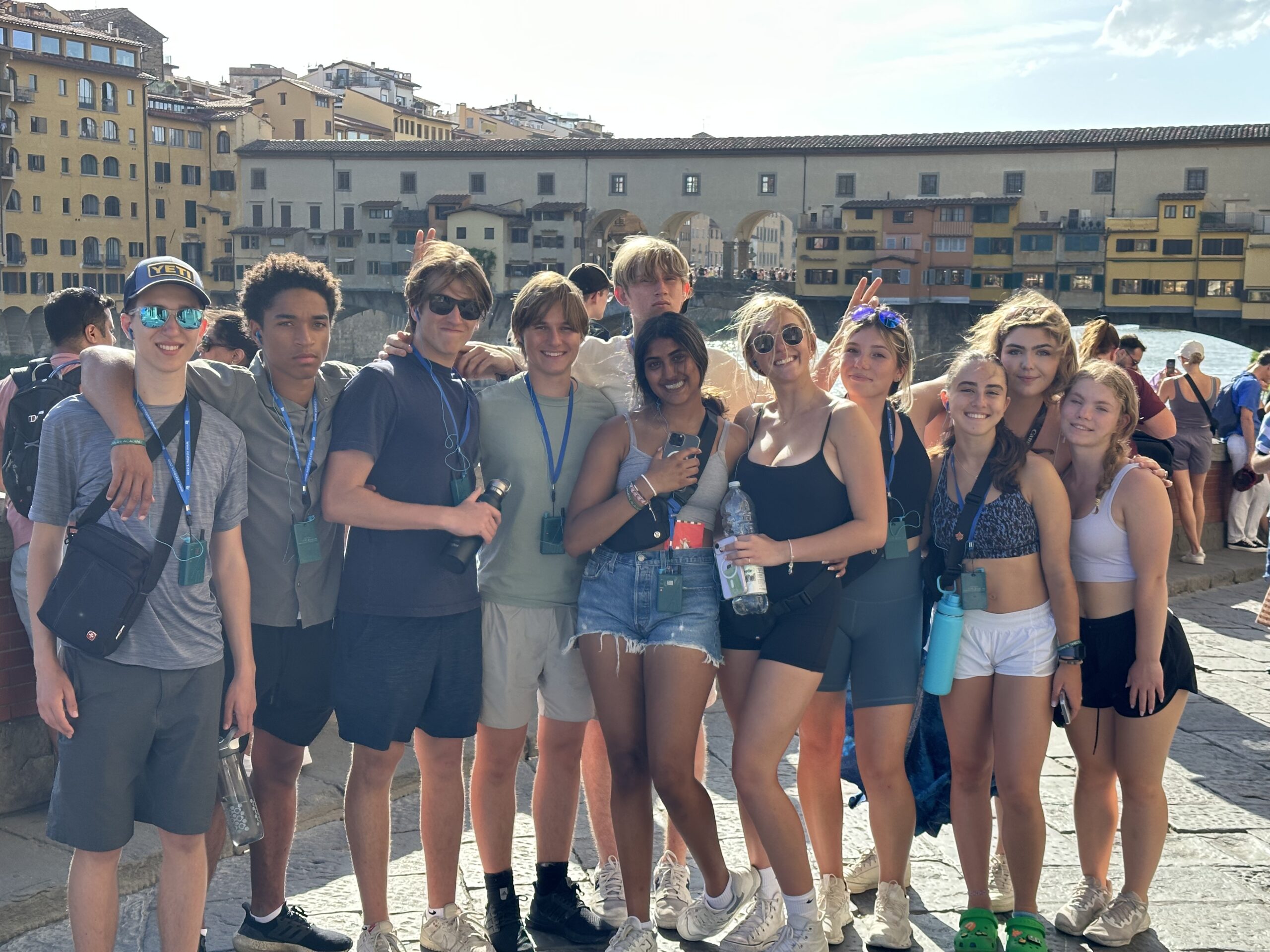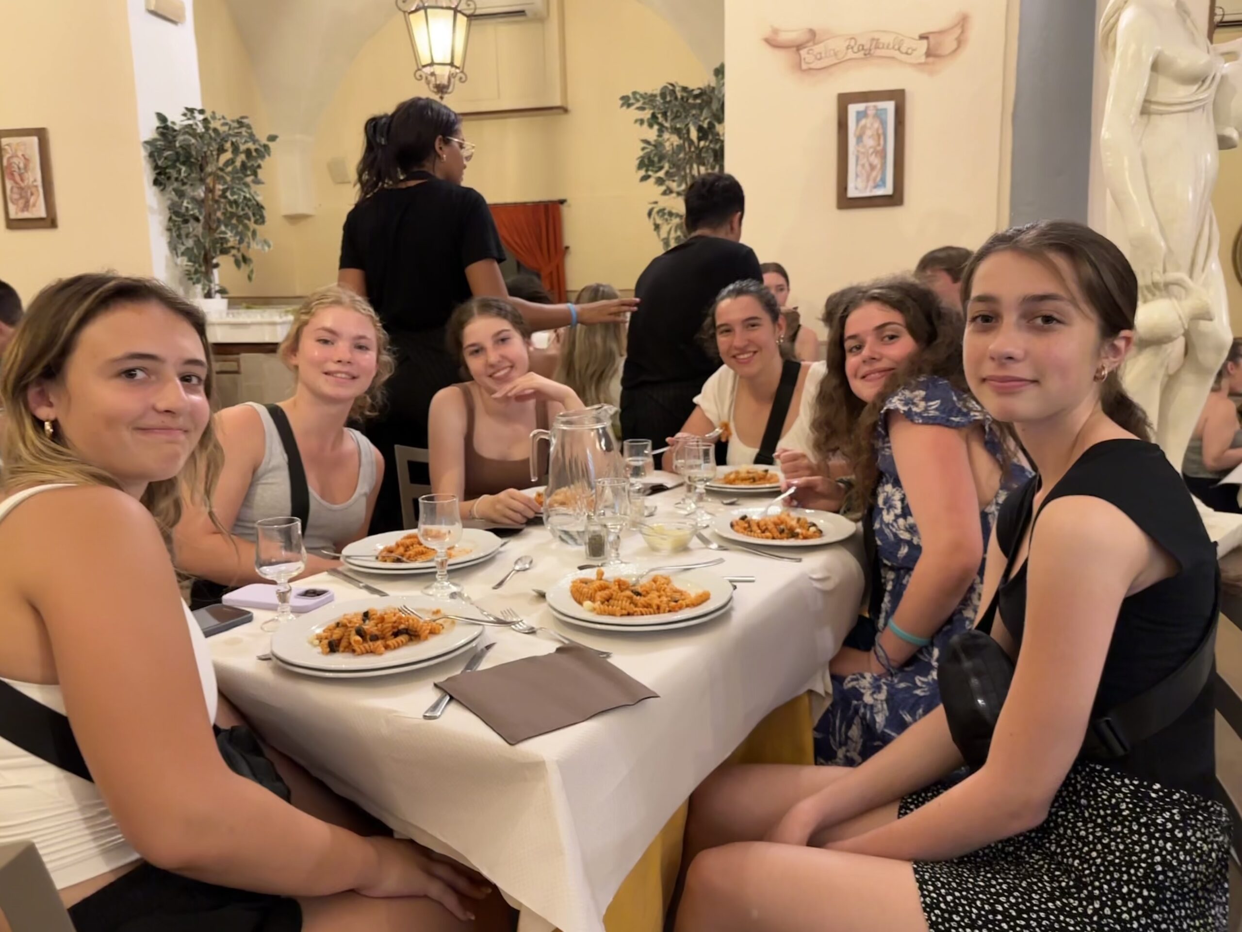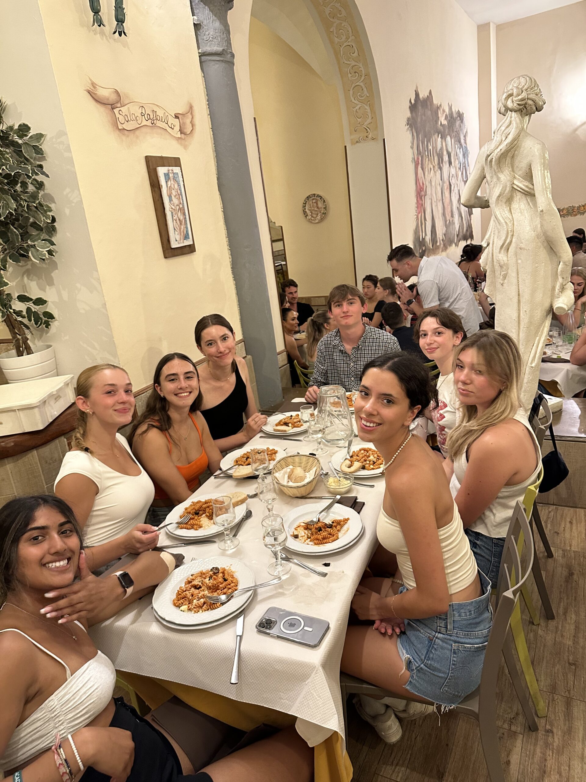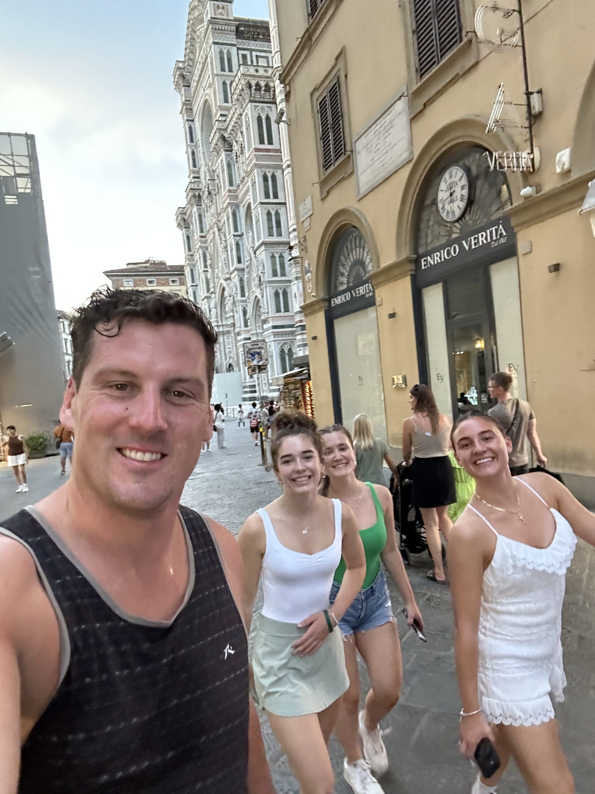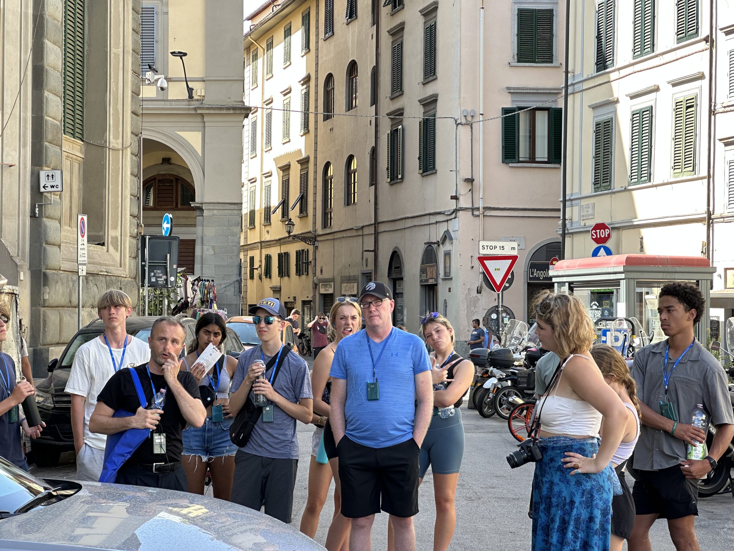 The second last transfer to Florence was smooth. We arrived got settled in our beautiful hotel and had a tasty pasta meal together. As we left the restaurant there was a symphony playing in the square next to us which many of us stopped to listen and watch. The finale was a tribute to Deep Purple. Rock on! Some of the students made it to Pisa for an excursion of fun and delicious Italian food – they loved the the unlimited Coca Cola! While some of us enjoyed the sights and sounds of Florence in our free time. The afternoon was hot which led to lightning and rain before dinner so a small group of students and Mr. D went to see Barbie with Italian subtitles – lucky for us the audio was in English! We enjoyed our last supper in Tuscany together before heading out in groups. Some enjoyed the sunset from Michelangelo’s Plaza!