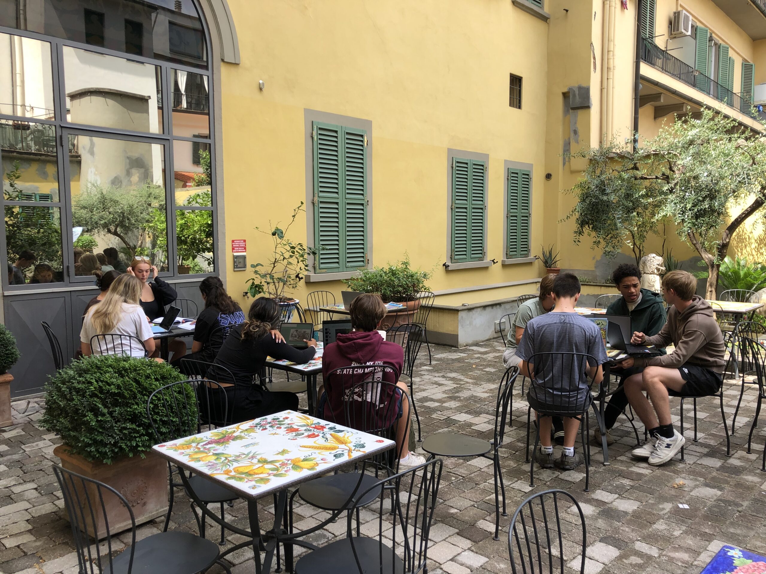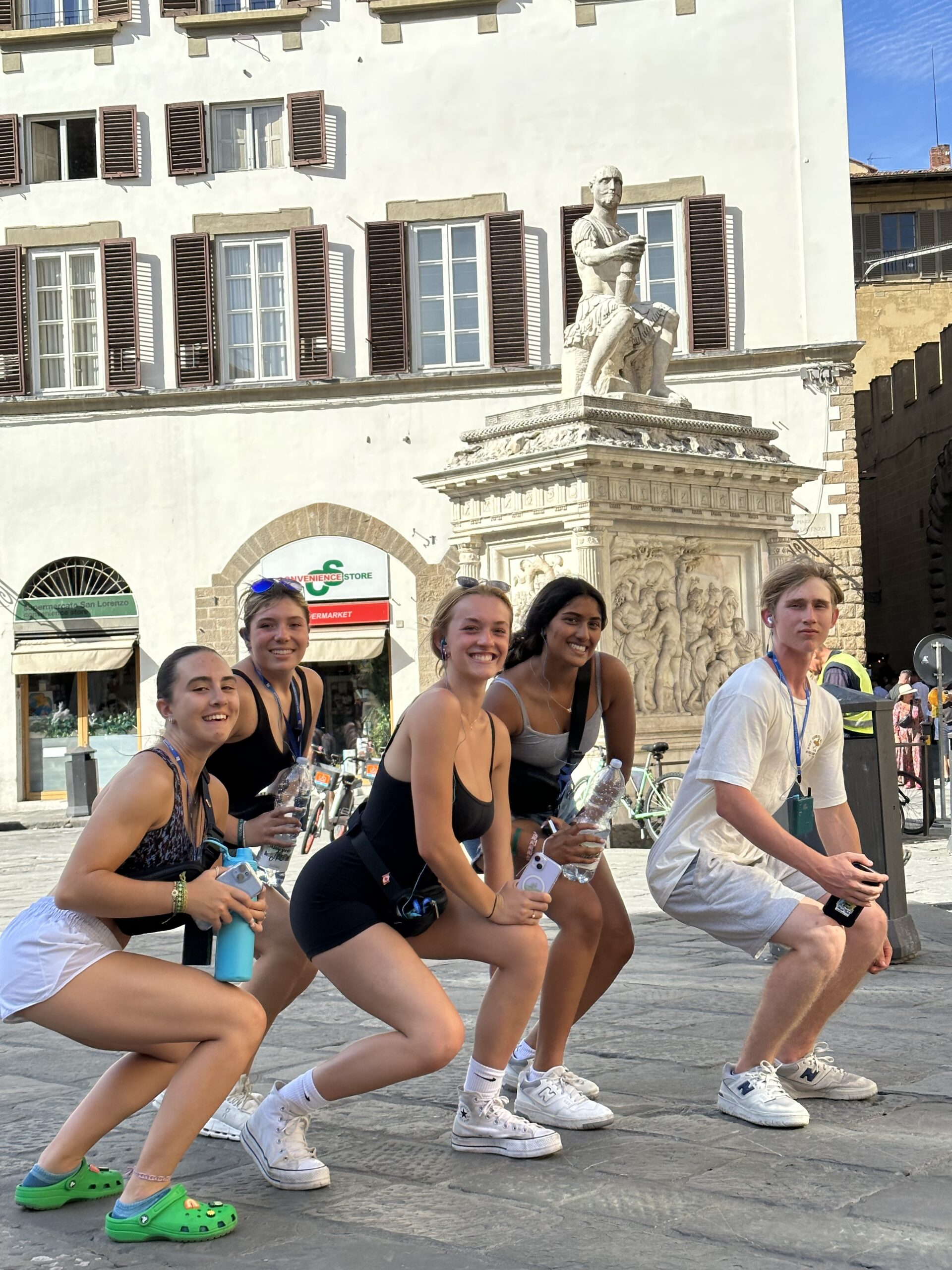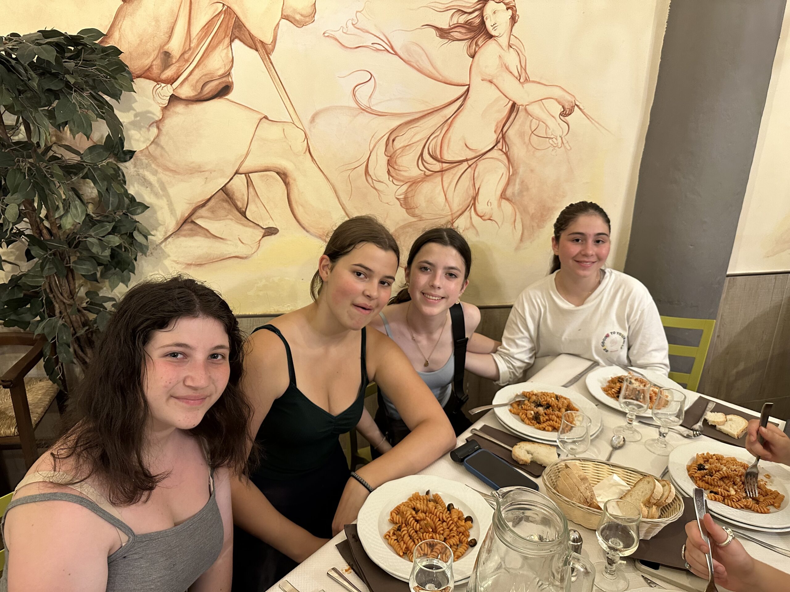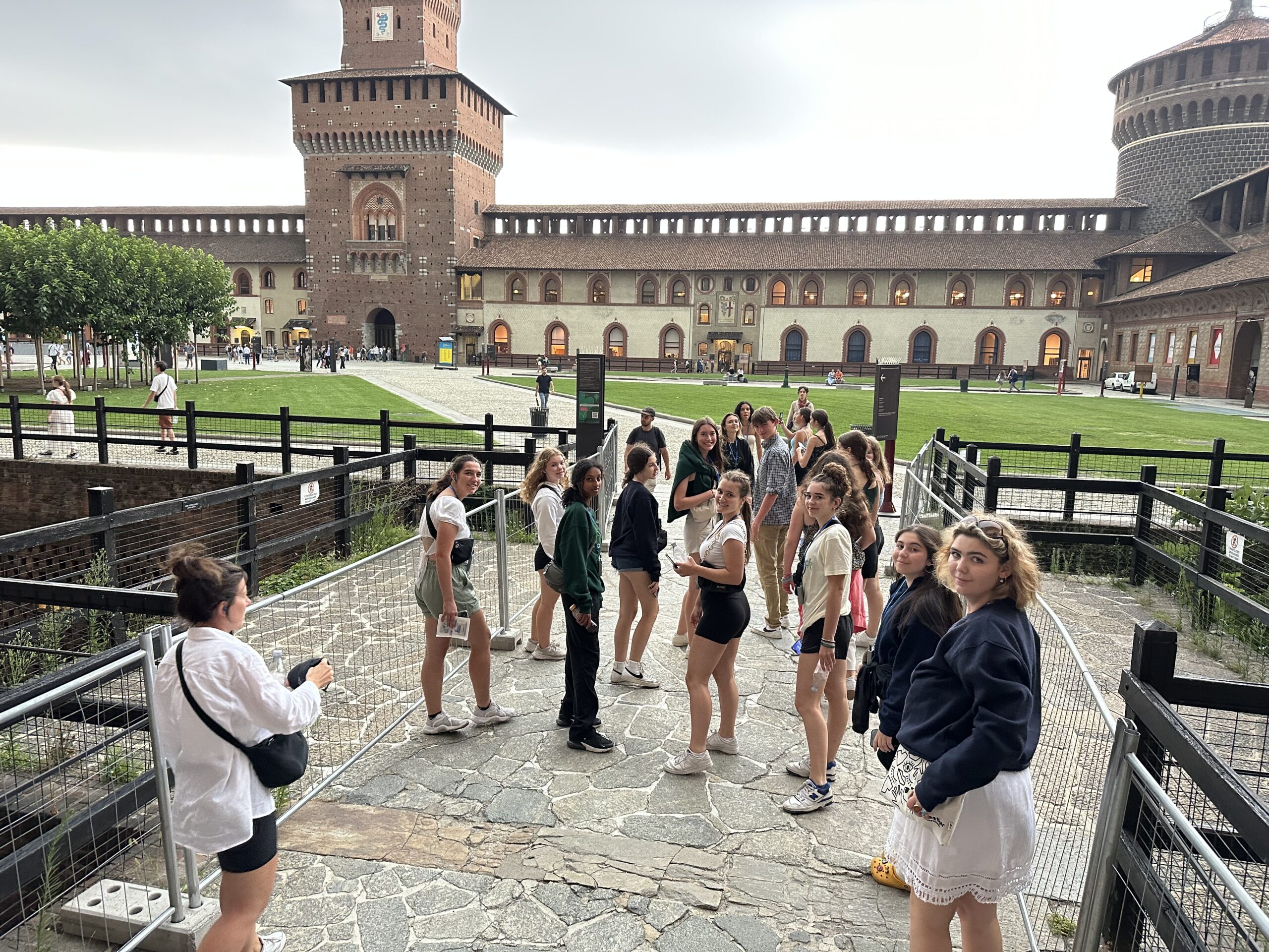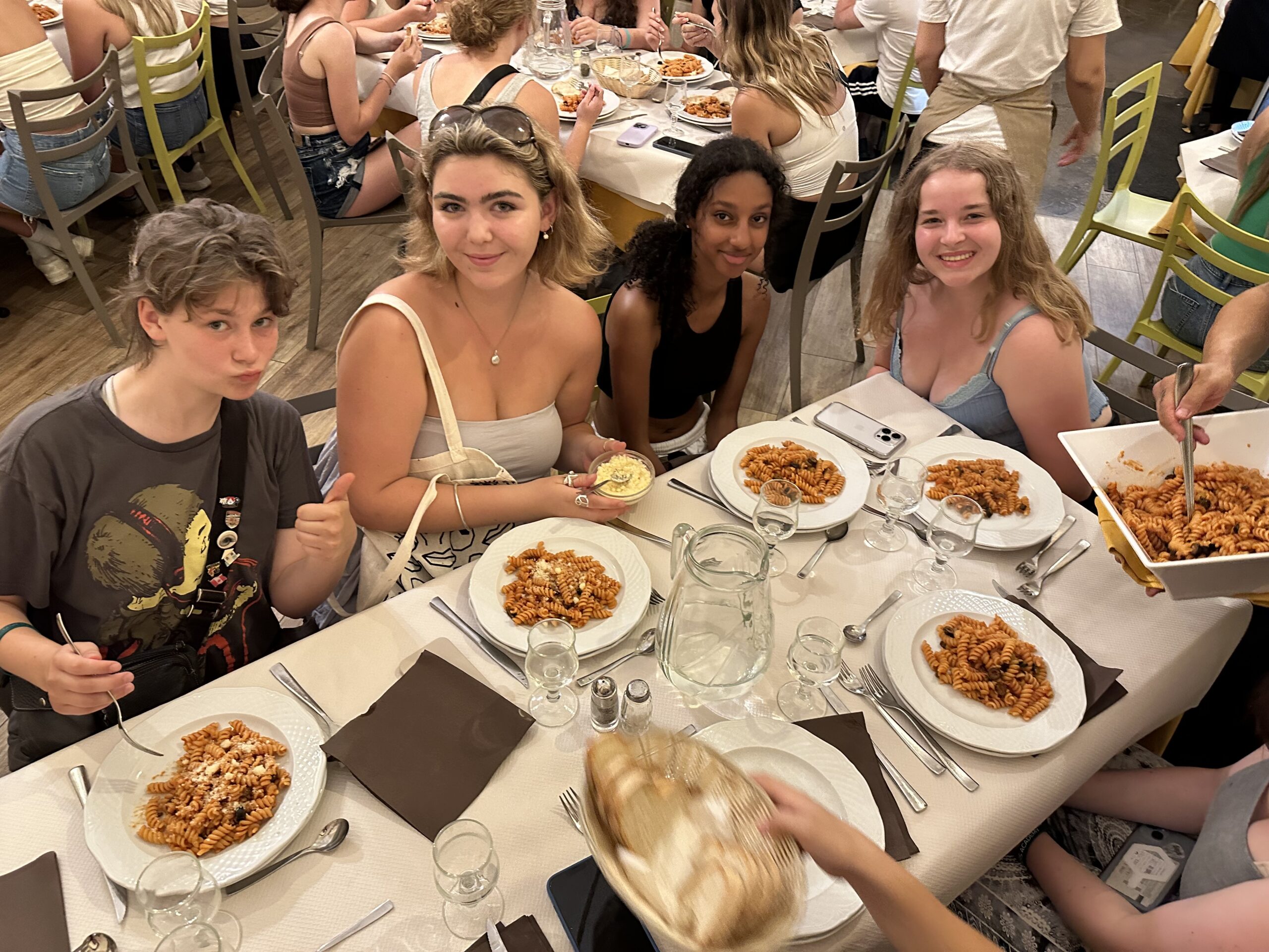 The second last transfer to Florence was smooth. We arrived got settled in our beautiful hotel and had a tasty pasta meal together. As we left the restaurant there was a symphony playing in the square next to us which many of us stopped to listen and watch. The finale was a tribute to Deep Purple. Rock on! Some of the students made it to Pisa for an excursion of fun and delicious Italian food – they loved the the unlimited Coca Cola! While some of us enjoyed the sights and sounds of Florence in our free time. The afternoon was hot which led to lightning and rain before dinner so a small group of students and Mr. D went to see Barbie with Italian subtitles – lucky for us the audio was in English! We enjoyed our last supper in Tuscany together before heading out in groups. Some enjoyed the sunset from Michelangelo’s Plaza!
