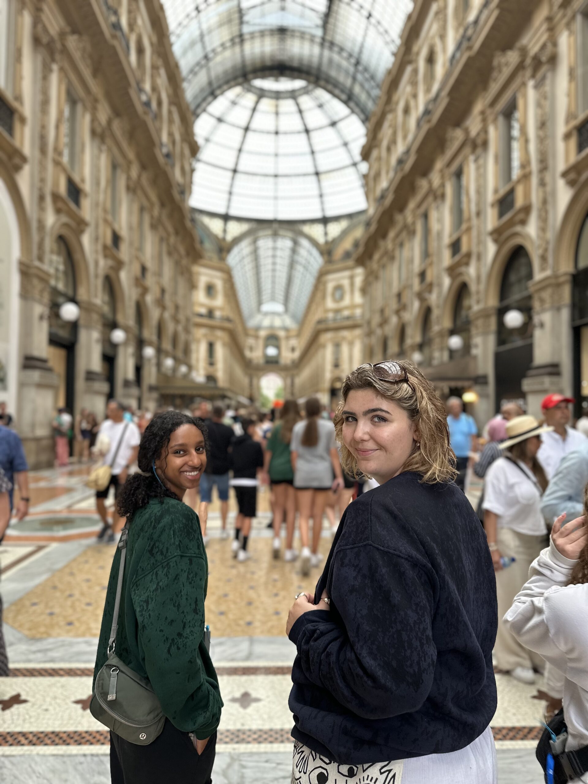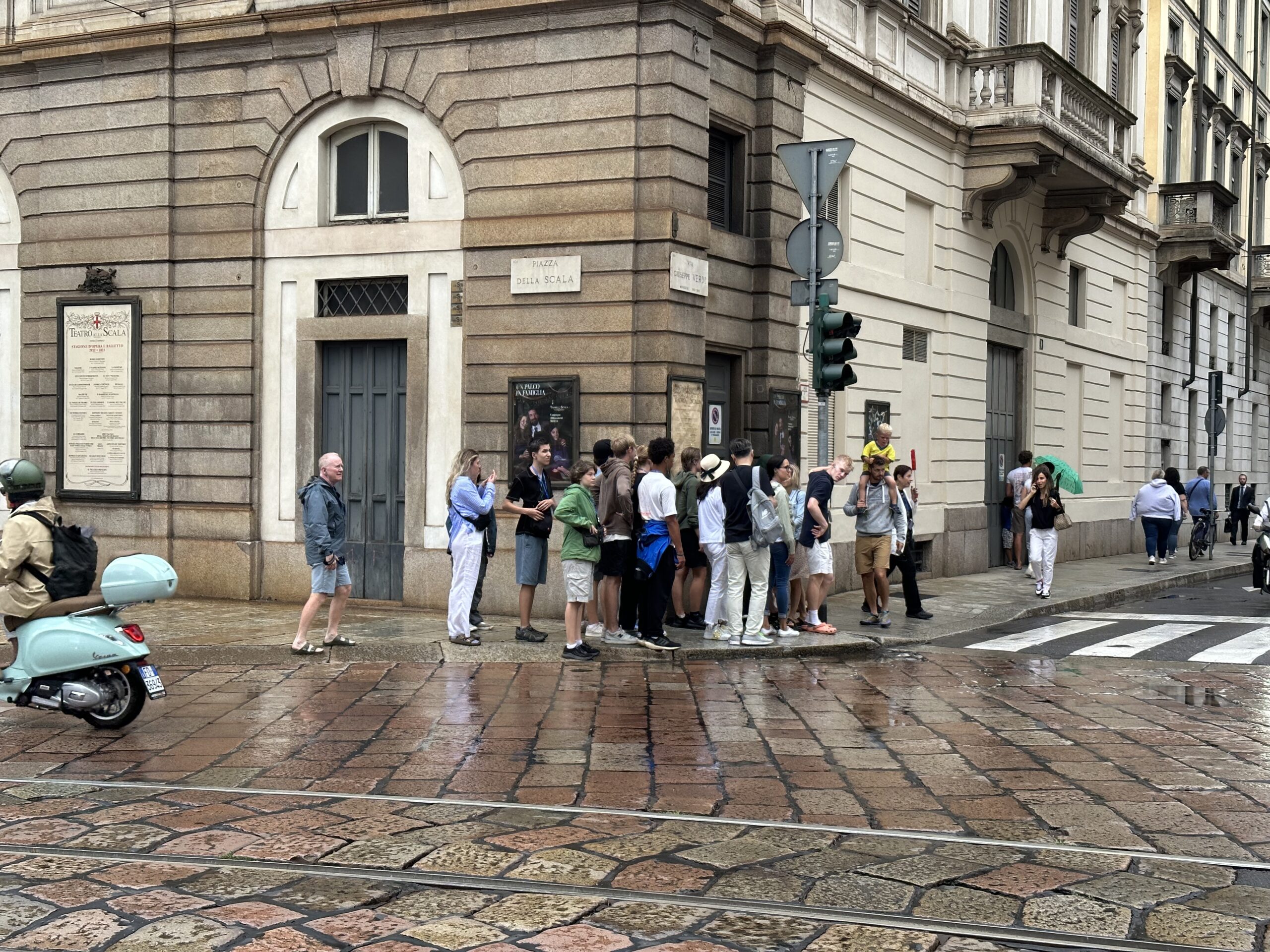 A wet morning was refreshing for us as we Yowled our way down the hill through the beautiful town to the train to then transfer onto our comfy coach bus to Milan, Italy. Some free time for lunch was made as we arrived midday then an informative walking tour. The weather could not make up its mind. We started with sun, felt like we walked through a hurricane (don’t worry, all were well and smiling), then had some light refreshing rain and finished back again with sun! The Duomo was wonderful and the fashions we saw made some of us (Mr. D and Ms Salerno) feel a little (read very) underdressed in our rain gear.