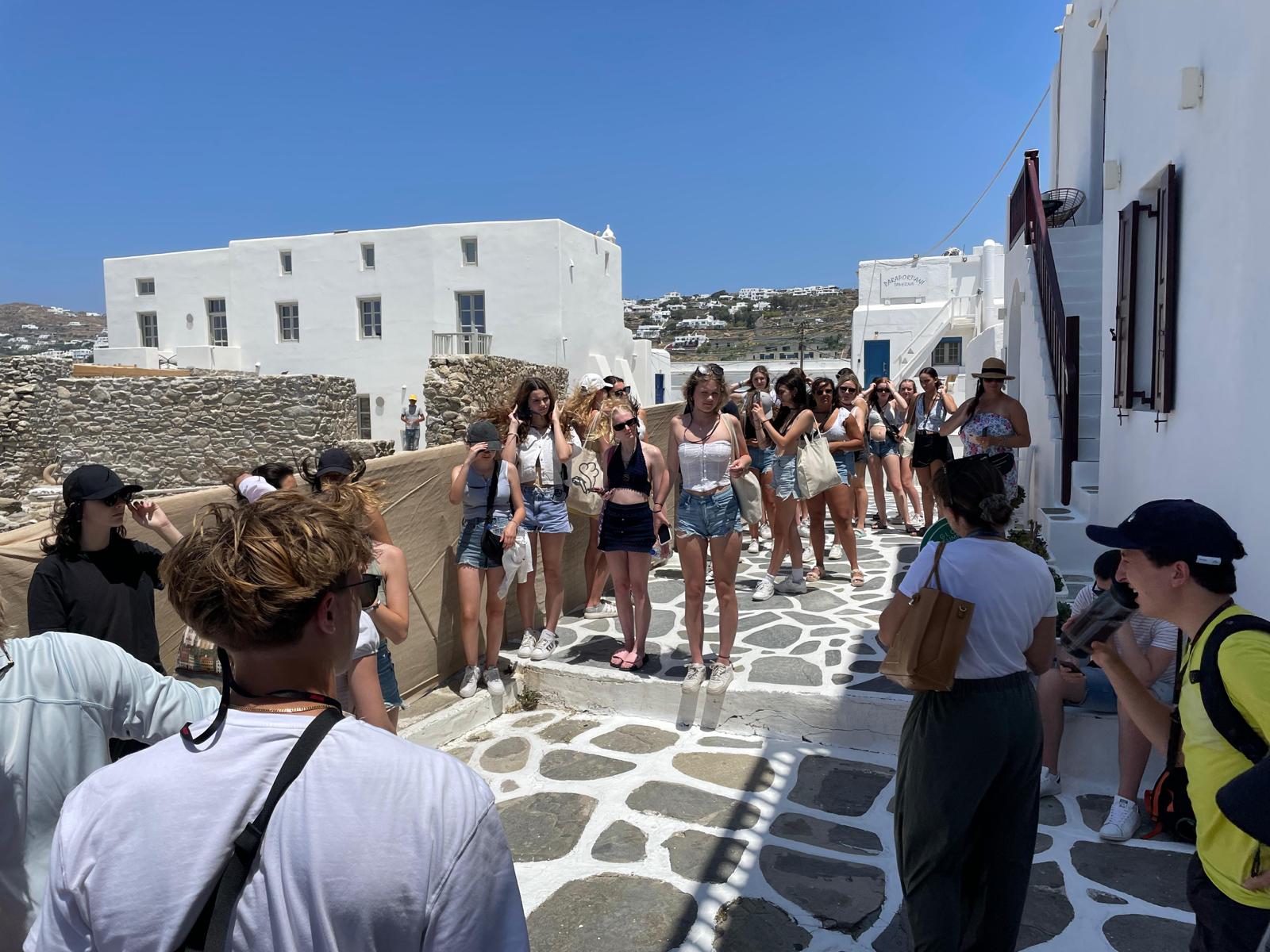 Those who had signed up for the Mykonos excursion left in the morning to explore the island. They took a ferry to the island and had the day to adventure and take in the magnificent views and culture of the island. You will even see that some of the students had the chance to sit down and chat with a local restaurant owner!