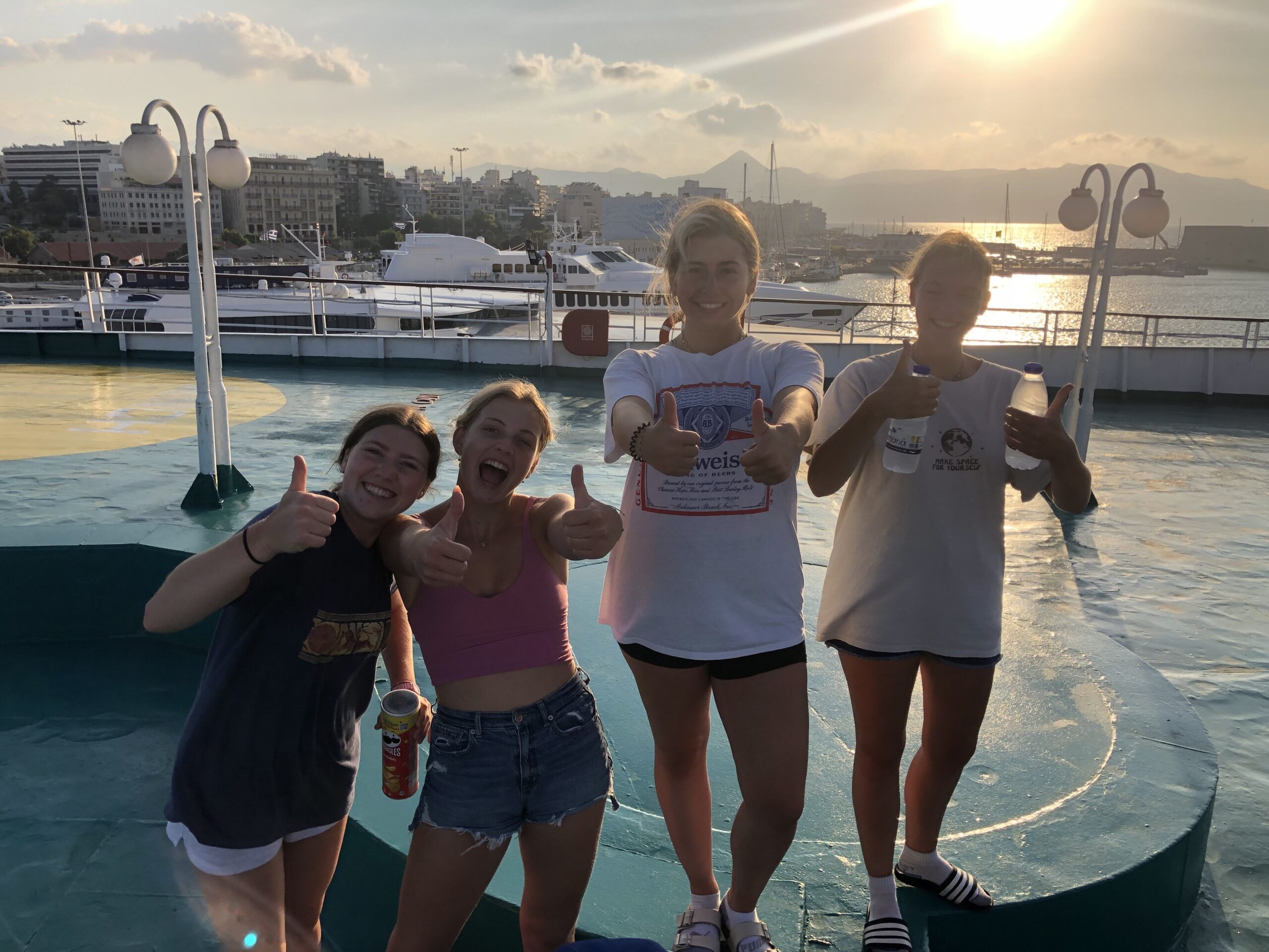 At 7 o’clock we boarded an overnight ferry from Heraklion to Athens. Each student checked into their cabins and headed to the ferry restaurant for a delicious meal of roasted chicken and potatoes.